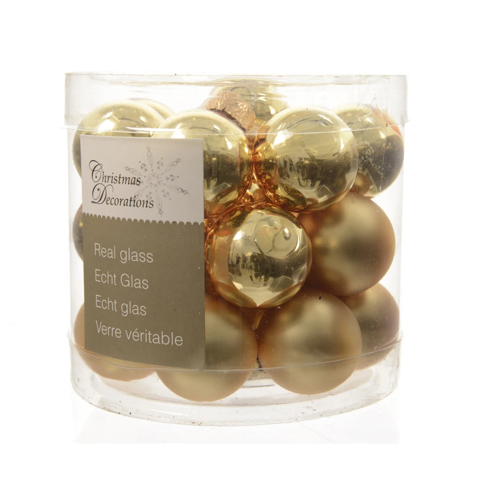 24 Palline Natalizie Vetro, diametro 25mm, colore Oro.