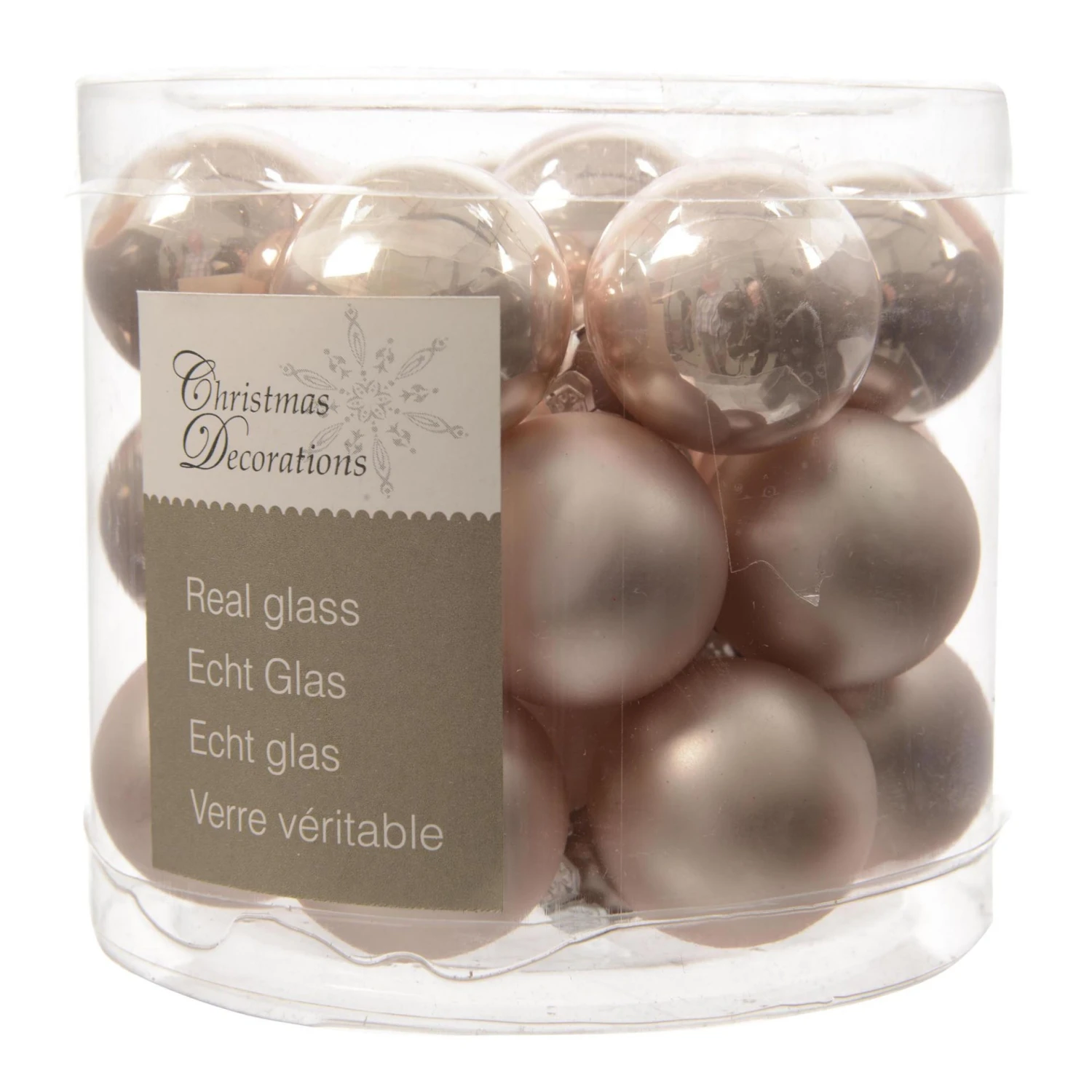 24 Palline Natalizie 25mm in Vetro Rosa Cipria.