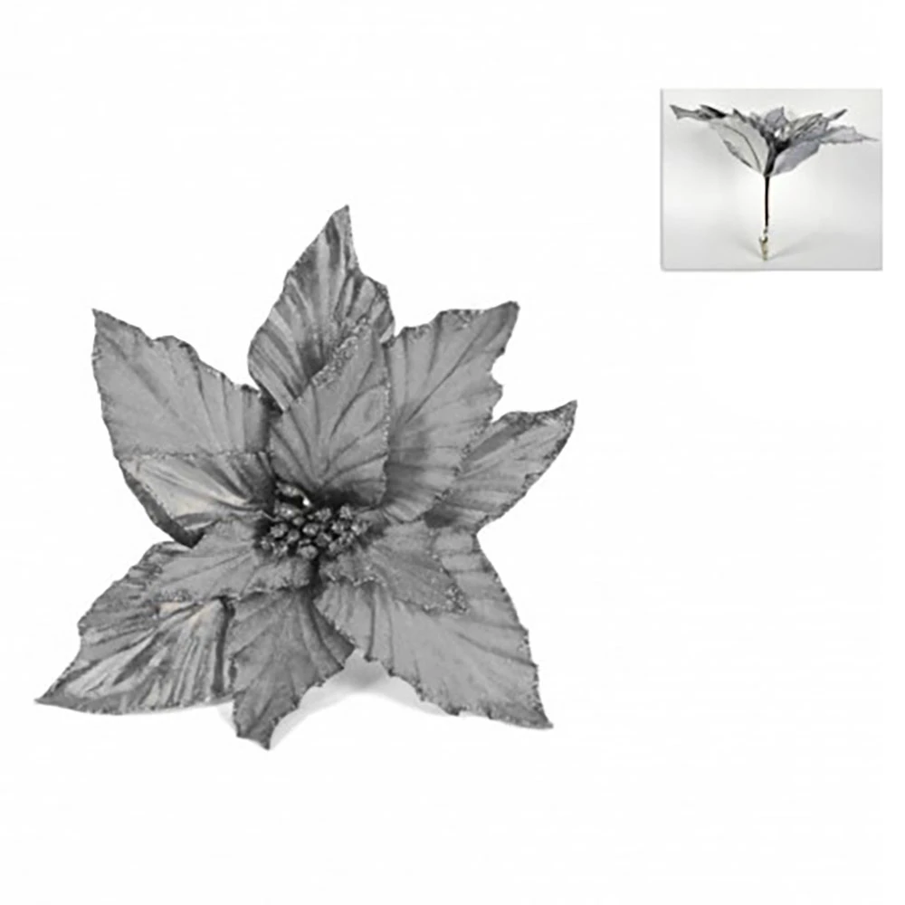Addobbo Floreale Stella di Natale 32cm Argento. Bellissima pinzetta decorativa per le feste di Natale.