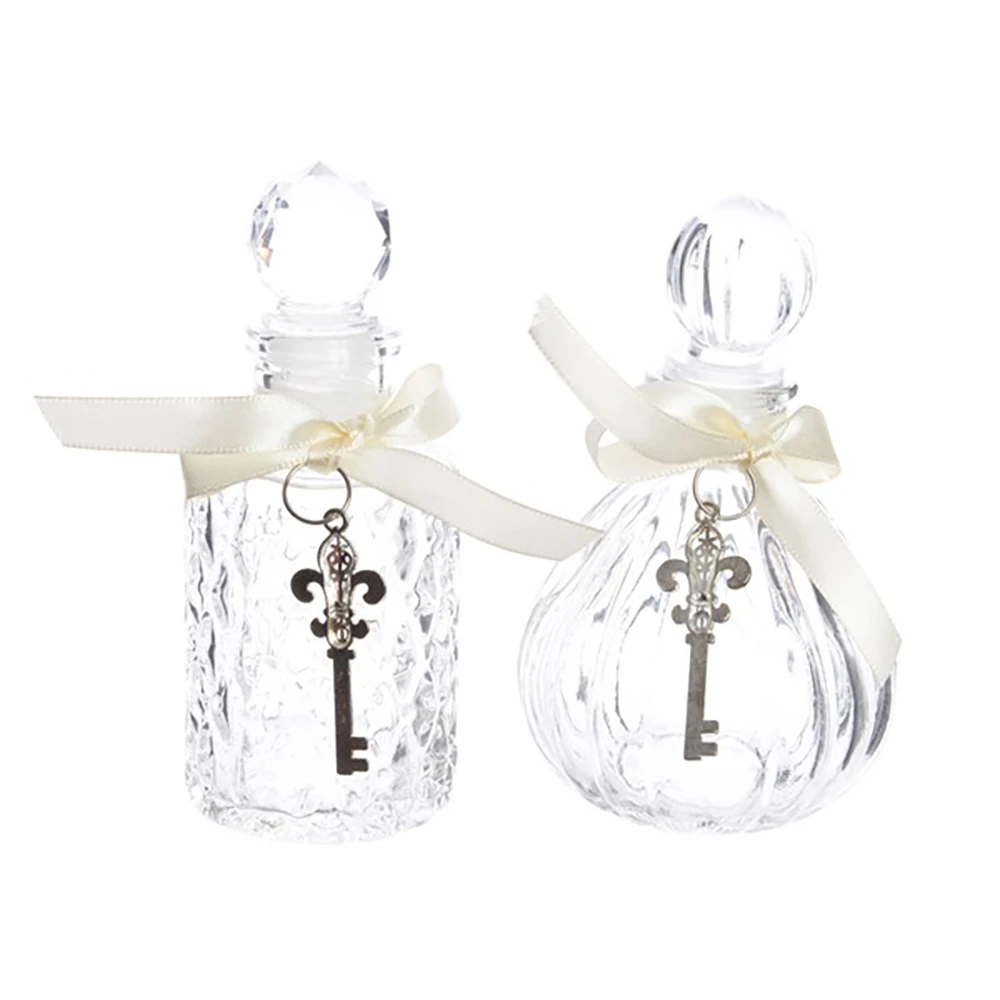 Bottiglietta di Vetro con Chiave è una piccola boccetta in vetro decorata con un nastro bianco e una chiave. Il prezzo si riferisce ad una bottiglietta di Vetro.