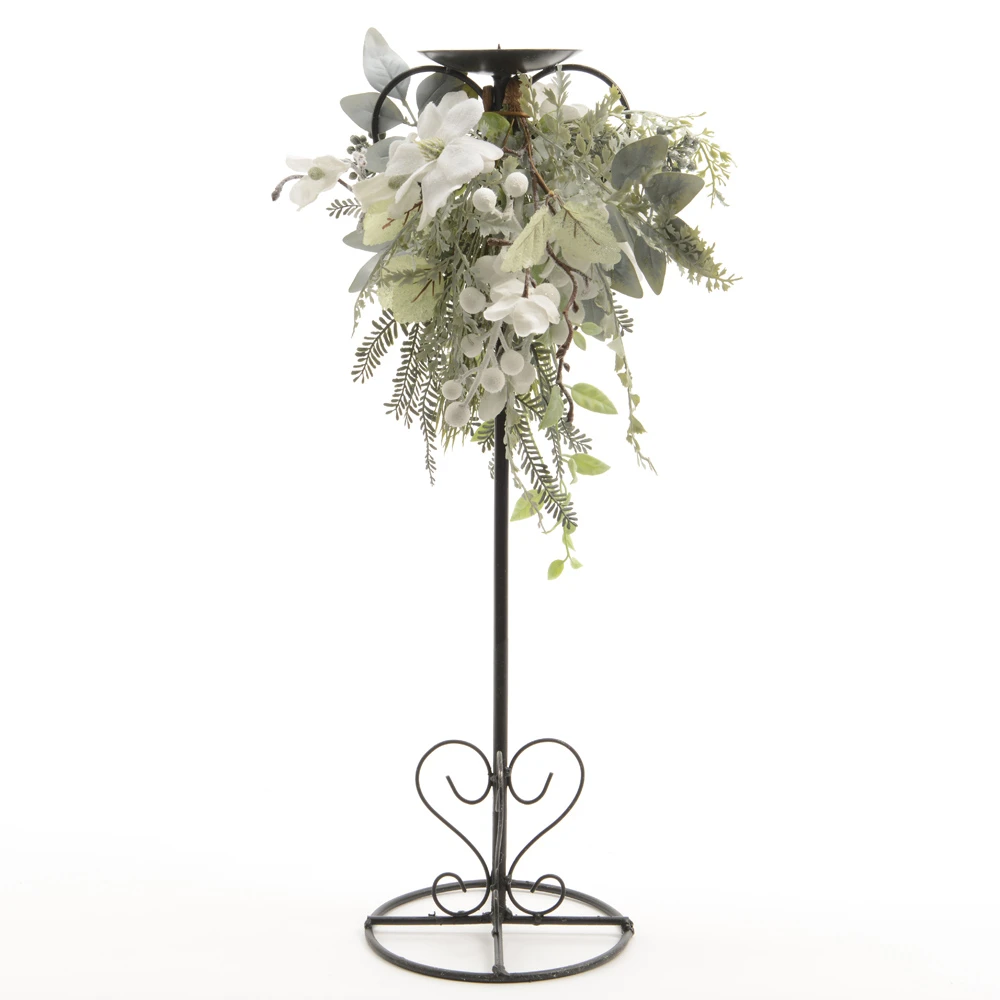 Candeliere Con Bacche Bianco 53cm