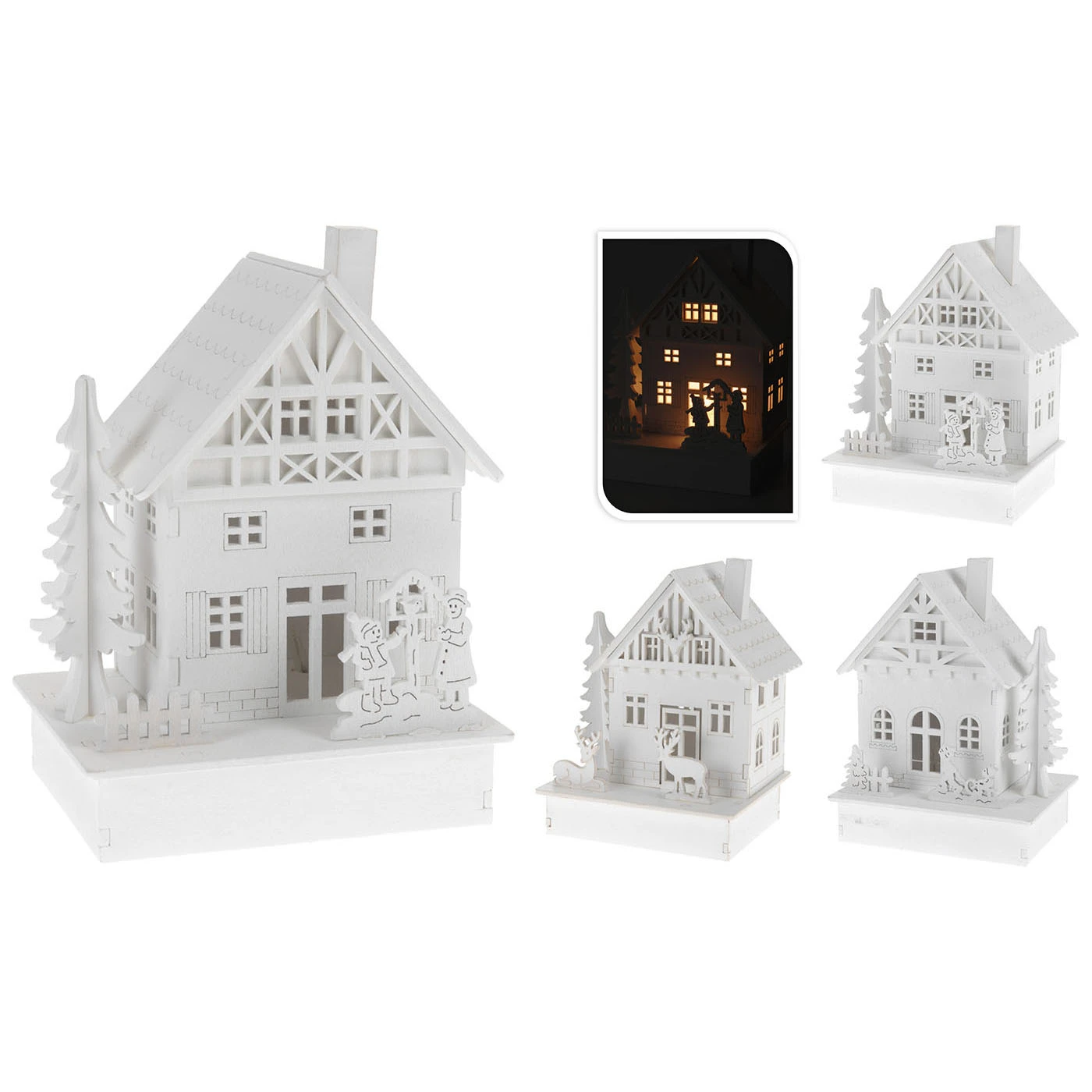 - Casa legno bianco con led bianco caldo 12x10x16cm, funzionamento a batteria (2x aa non incluse)