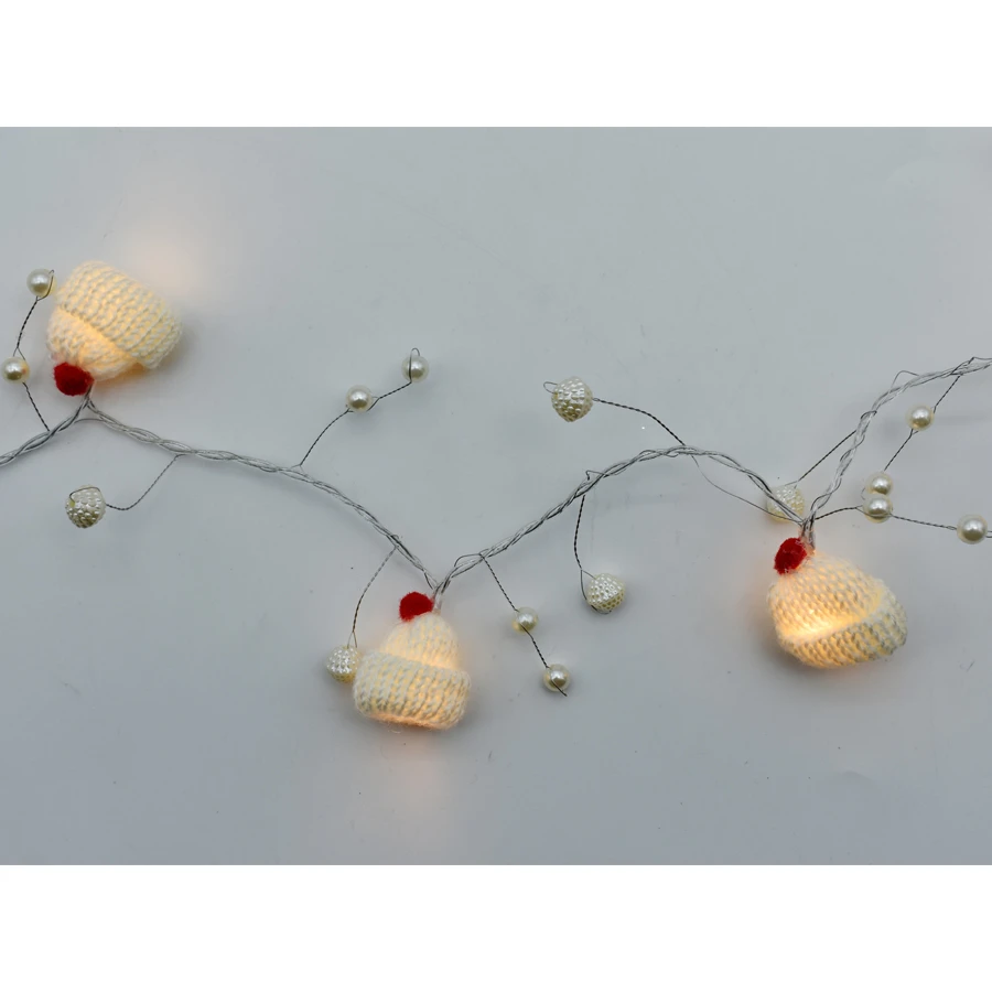 Maggiori informazioni Catena Luminosa con 10 Cappelli Lana Avorio con Perline LED a Batteria Prequ: