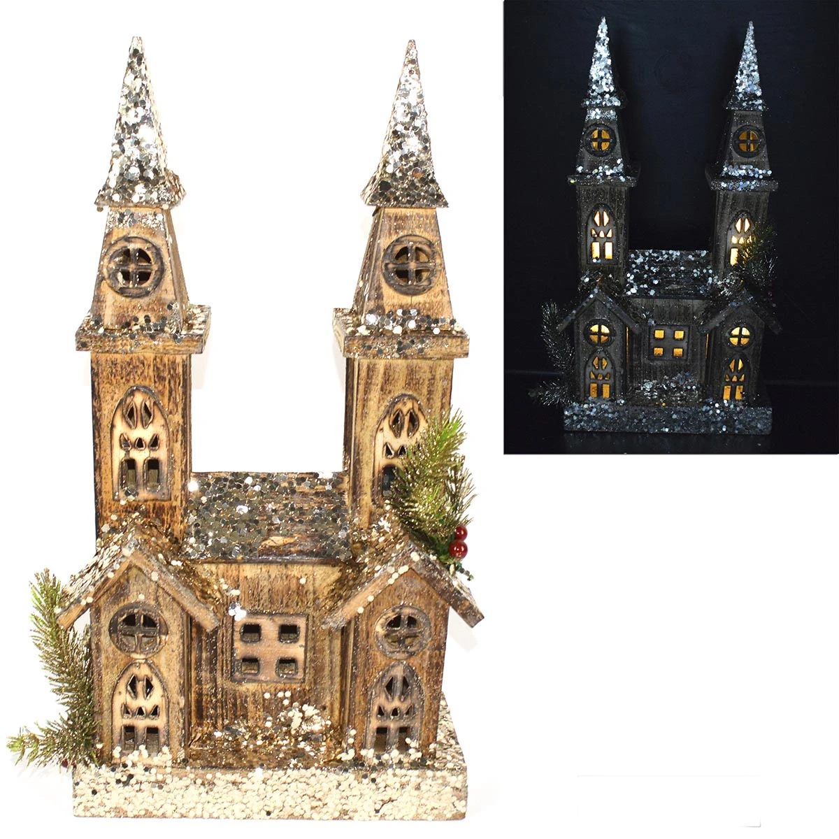 Questa Chiesetta in Legno con Luci è la soluzione ideale per rendere ancor più originale il tuo villaggio natalizio. Caratterizzata da due campanili e provvista di ramettti decorativi, questa particolare chiesetta conferirà un tocco di stile in più ai tuoi ambienti durante il magico periodo delle Feste.