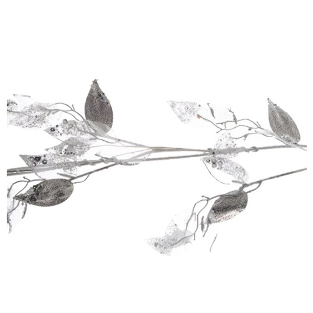 Ghirlanda Natalizia Foglie Pendenti Da 120cm Bianca Argento