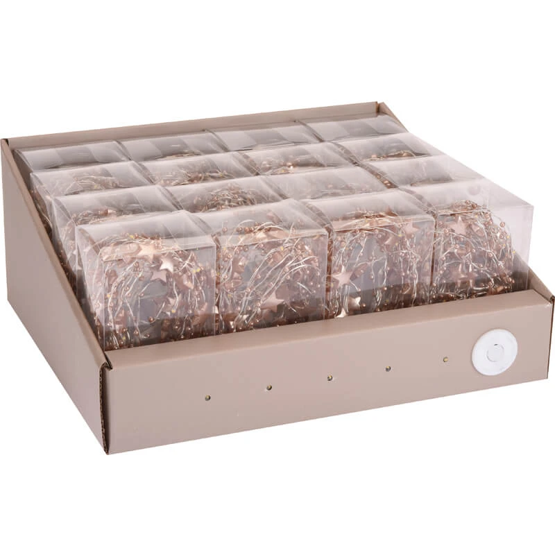 Il Filo in Metallo con 40 Microled di Koopman è ideale per dare un’aria raffinata ed elegante ai tuoi ambienti. Utilizza queste catene di led color rame, a forma di stella per decorare la tua casa durante le festività natalizie.