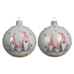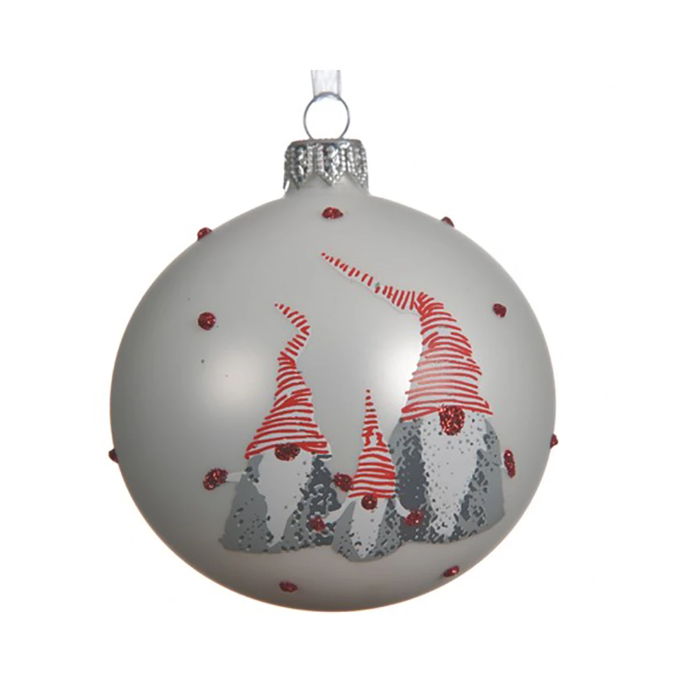 Pallina Natalizia 80mm in Vetro con Decorazione Gnomi.