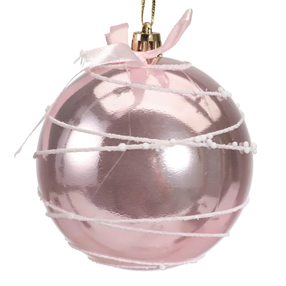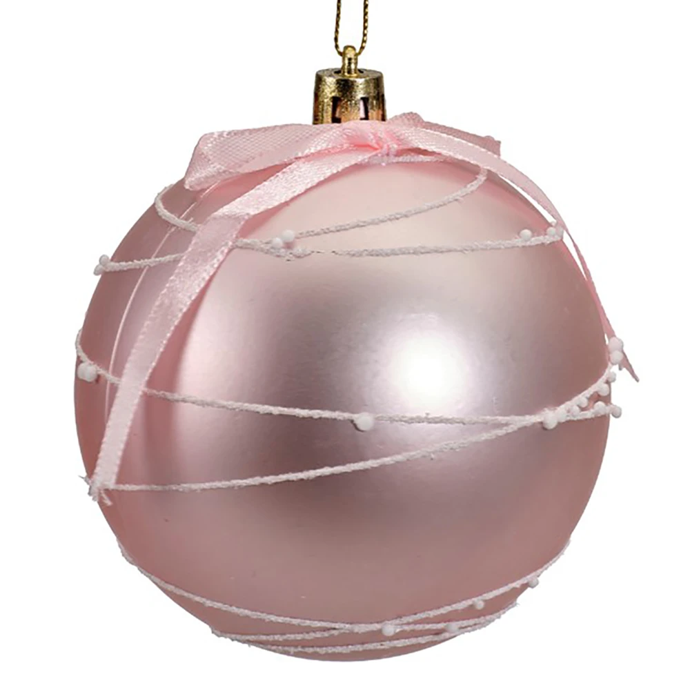 Pallina Natalizia 80mm Infrangibile Rosa Cipria con Decorazione.