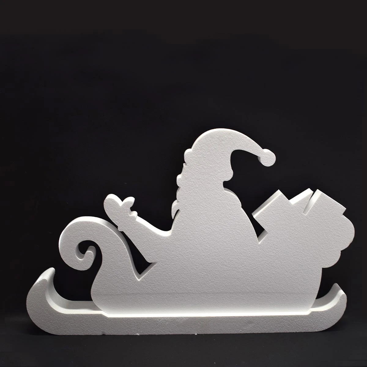 L’originale Slitta con Babbo Natale, realizzata in polistirolo e dotata di uno spessore di 8 centimetri, sta in piedi da sola ed è perfetta per l’addobbo di finestre e vetrine.
