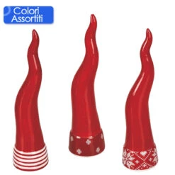 Villa d’Este Corno Portafortuna di Natale in Ceramica di Villa d’Este è l’antico talismano portafortuna che porta a chi lo indossa forza, fertilità e buon auspicio. Nella cultura italiana il Cornetto Portafortuna a forma di peperoncino è indispensabile per liberarsi dai guai. Ideale come regalo di Natale per chi crede nella sua energia. Villa d’Este Corno Portafortuna è realizzato in ceramica ed è disponibile in tre varianti assortite. Una confezione contiene 1 cornetto Portafortuna.