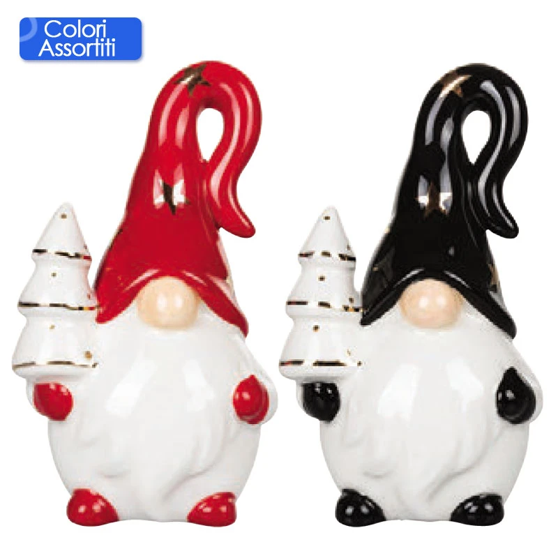 Villa d’Este Gnomo Piccolo di Natale con Albero di Villa d’Este è un piccolo gnomo natalizio che solleva con una mano un alberello. Realizzato in ceramica. Disponibile in 2 colori assortiti: rosso o nero.