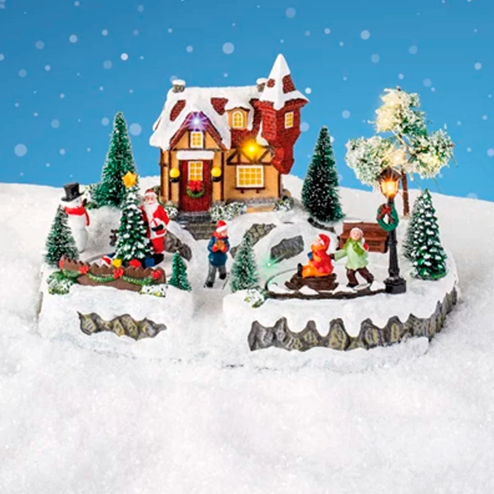 Il Villaggio Natalizio Bambini che Sciano Luci a LED 31 cm è una scenetta natalizia con luci a LED. Il Villaggio Natalizio Bambini che Sciano Luci a LED 31 cm dà subito un tocco di magia natalizia al tuo arredamento interno! Il Villaggio rappresenta un caseggiato con dei bambini che sciano, Babbo Natale e Alberi di Natale! Tutto il paesaggio è illuminato: i LED donano al villaggio la luminosità e i colori tipici del periodo natalizio!