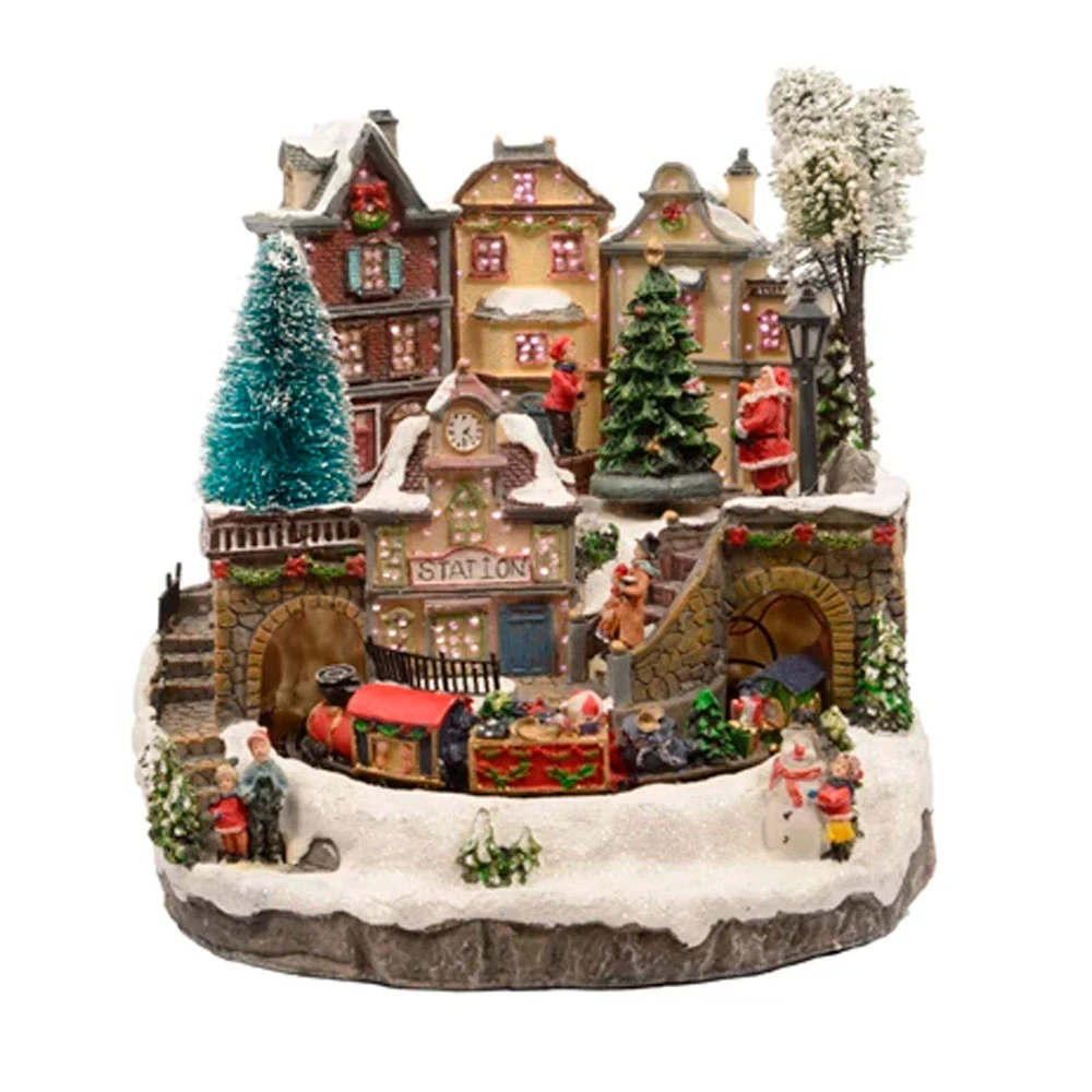 Il Villaggio Natalizio Stazione con Treno Luci a LED Musica e Movimenti 26 cm è una scenetta natalizia con luci a LED, suoni e movimenti. Il Villaggio Natalizio con Luci a LED Musica e Movimenti dà subito un tocco di magia natalizia al tuo arredamento interno! Il Villaggio rappresenta un caseggiato con una stazione ferroviaria e un treno in movimento!